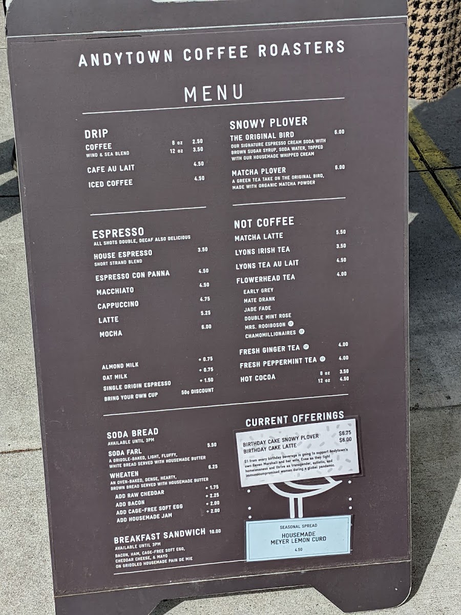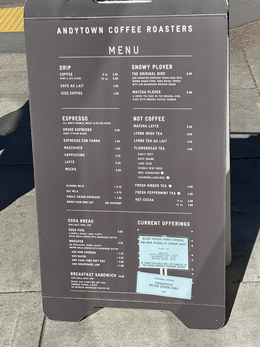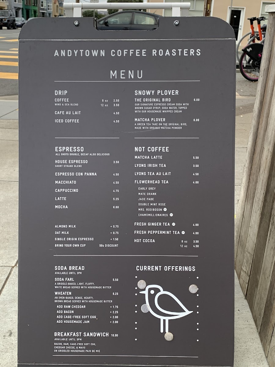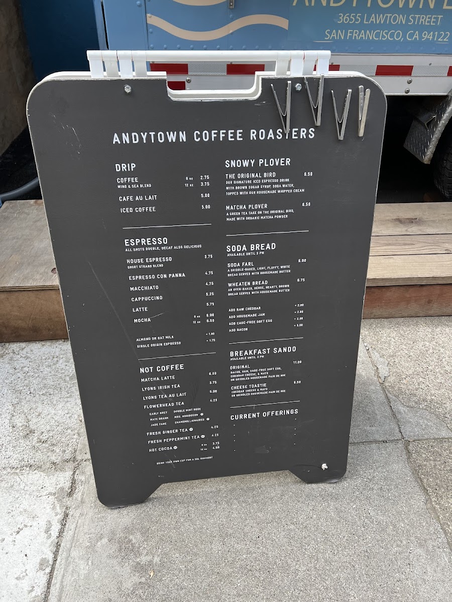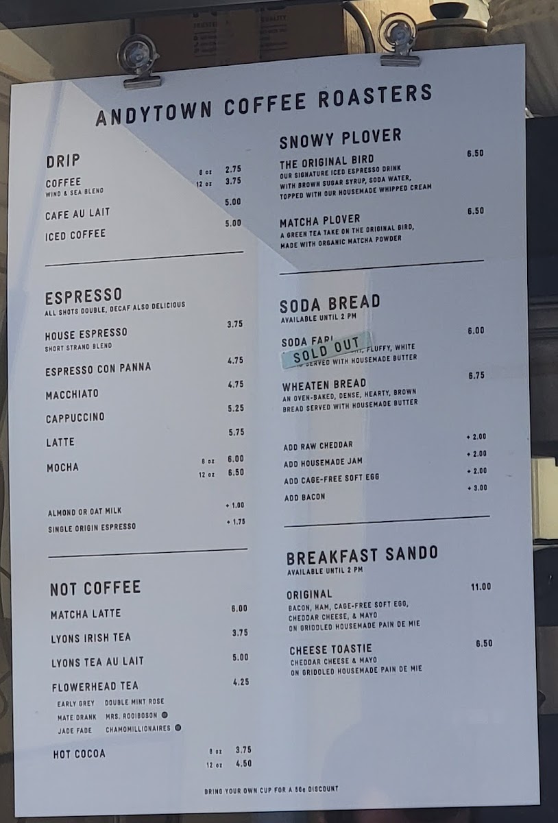 Andytown Coffee Roasters Menu